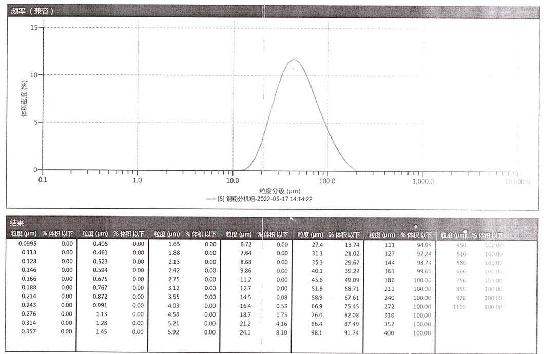 進料細度:閃蒸烘干后電解銅粉